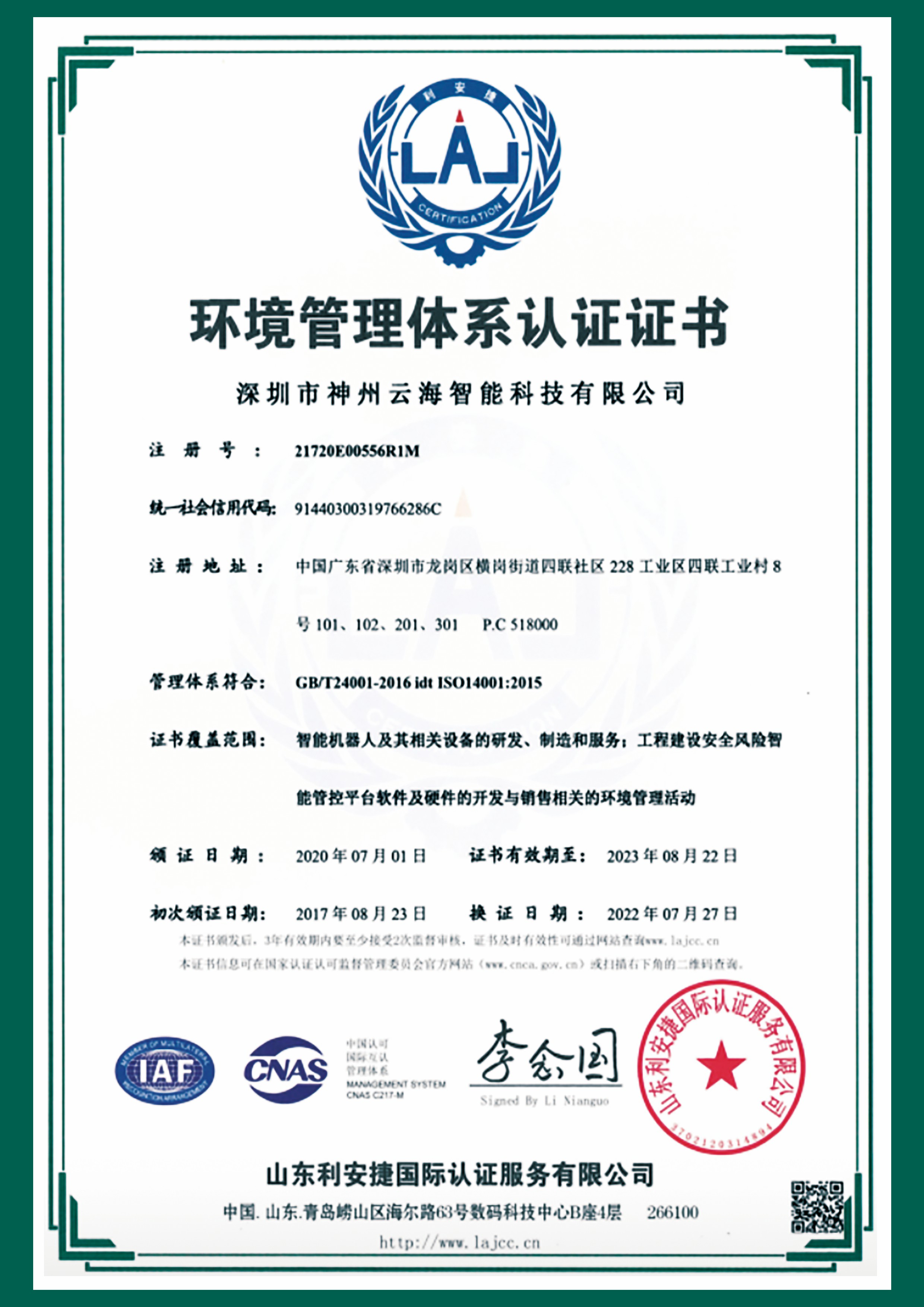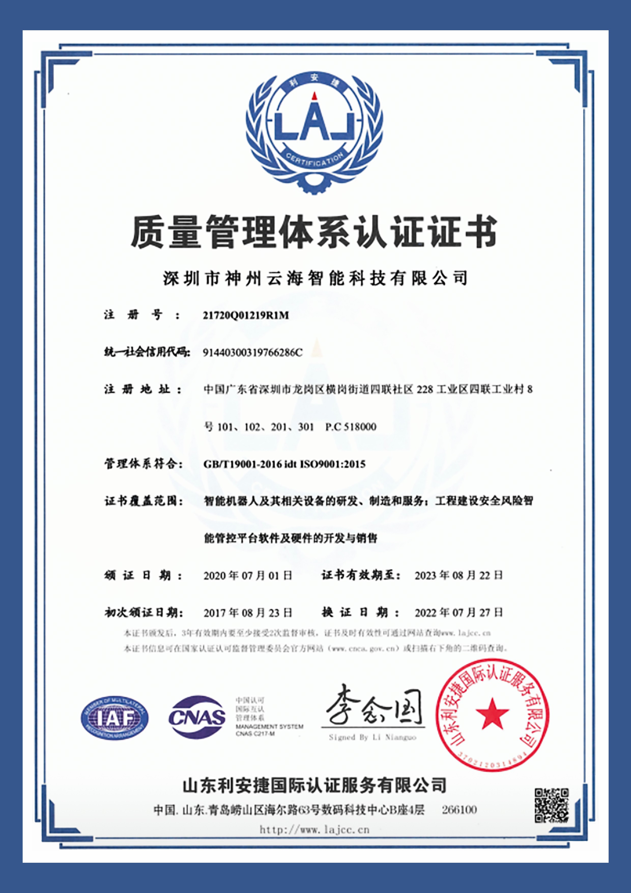 質量管理體系認證證書