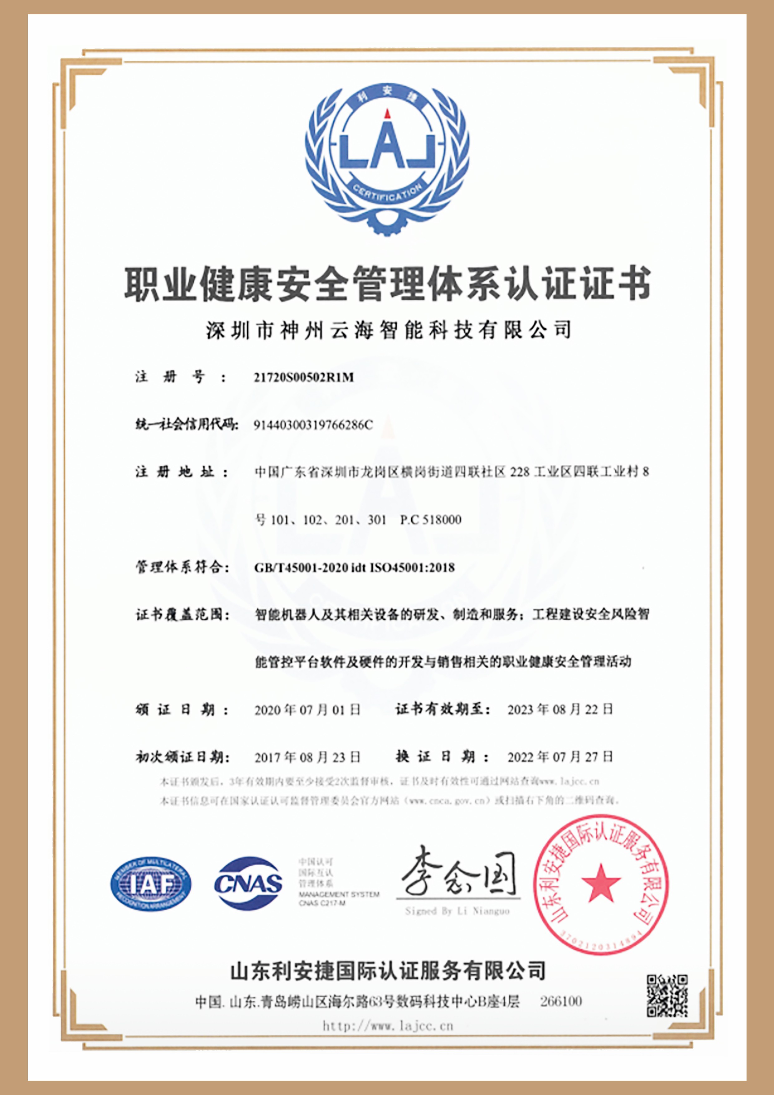 安全管理體系認證